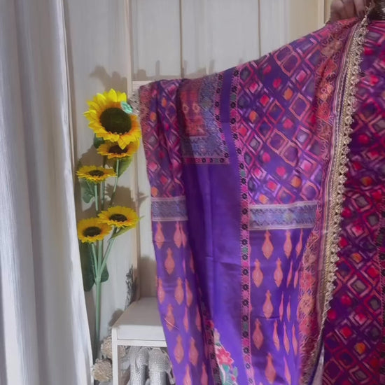 Shop elegant purple printed kurta palazzo set with dupatta. Perfect for festive wear, cultural events, and everyday ethnic styling. Premium quality fabric.
